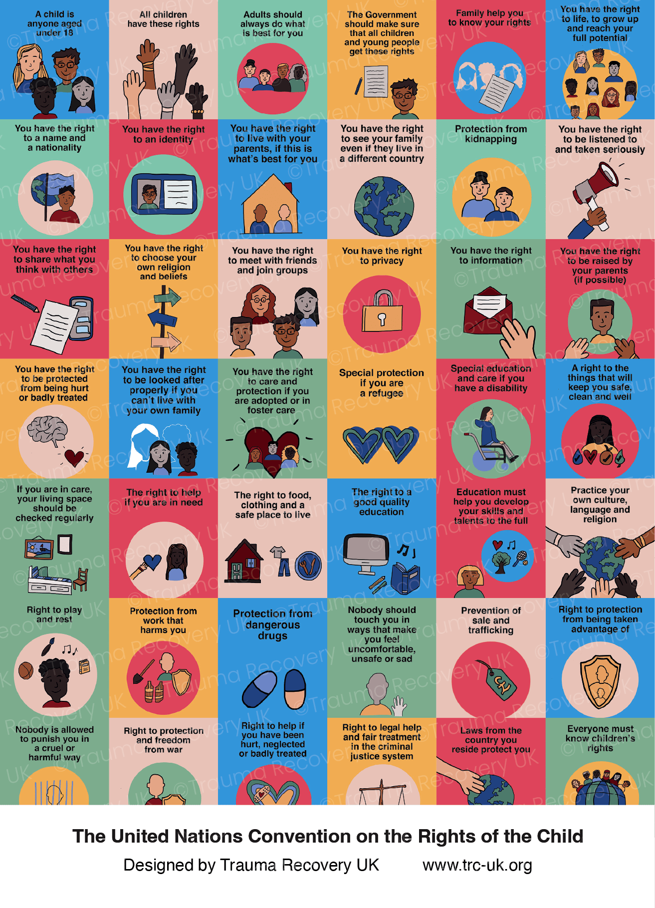 This artwork displays all 26 United Nations Rights of the Child.